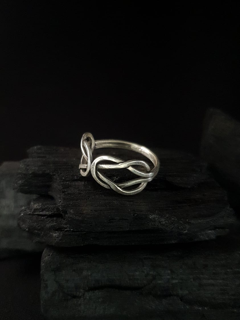 Nœud Éternel – Bague artisanale en fils d’argent tressés