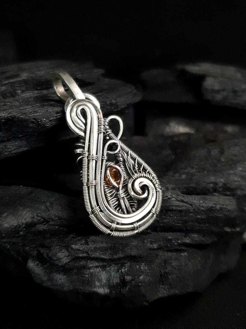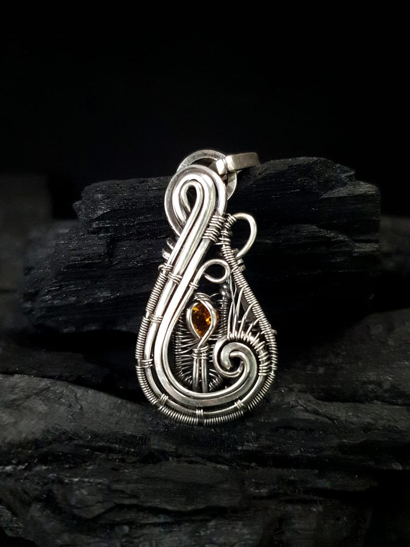 Pendentif Artisanal Tourmaline Orange & Argent